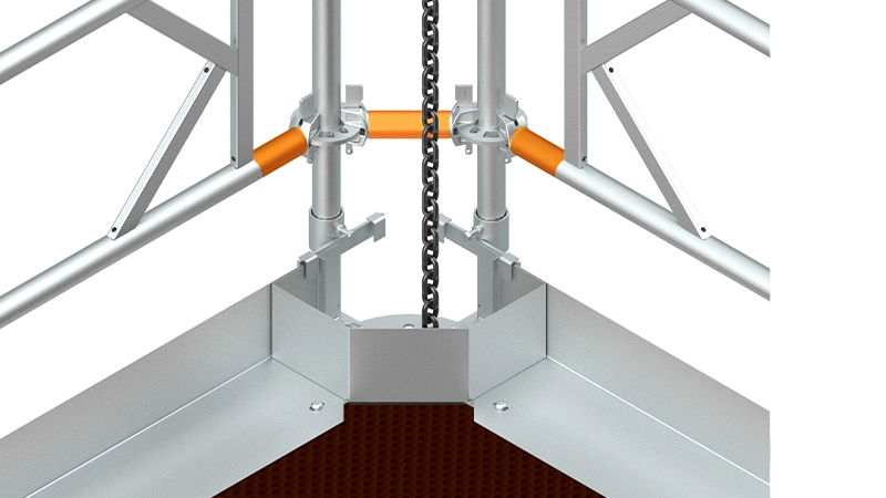 The next generation of modular suspended access systems, ScaffDeck is designed for maximum safety, efficiency and adaptability in elevated works. Constructed from high strength low alloy S700 steel, it offers reduced weight with exceptional load bearing capacity. The innovative reversible truss enables the alternative use of either, high-grade anti-slip birch plywood panels or galvanized anti-slip steel decking boards with an integrated auto-wind-lock, as per project requirements. ScaffDeck enables rapid assembly and improved safety through superior components, versatile anchoring options, and cross-compatibility with multiple scaffold systems.